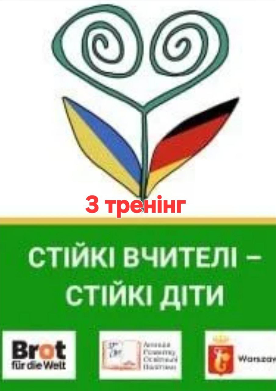Ми продовжуємо проводити тренінги «Травма-інформована педагогіка: форми й методи роботи в українській школі» в межах проєкту «Стійкі вчителі – стійкі діти: серія тренінгів з травмапедагогіки в школах», який реалізується за фінансової підтримки благодійної організації «Brot für die Welt» («Хліб для світу»), Німеччина, ГО «Об’єднання «Агенція розвитку освітньої політики», Україна та Департаменту освіти м. Варшава, Польща. Третій тренінг відбудеться 26 жовтня – 1 листопада 2025 року у Варшаві.